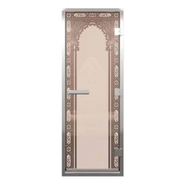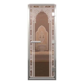 Двери для бани и сауны DoorWood Хамам восточная арка бронза выполнены из прочного закаленного стекла с соблюдением всех особенностей, они герметичны, влагоустойчивы и не боятся перепадов температуры.