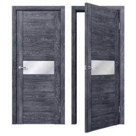 Актуальная межкомнатная дверь Dominika 233 с интересным декорированием вставками стекла, в виде горизонтальных полос, превосходно сочетается с современными популярными стилями интерьеров.