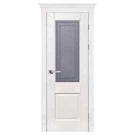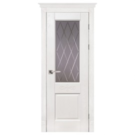Современная традиционная модель Капри 3 со стеклом №1 выполнена из массива сосны, декорирована объемными филенками, резными элементами из массива дуба и фрезерованным стеклом.