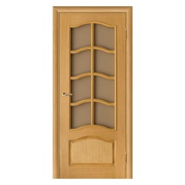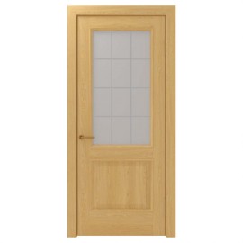 Дверь комбинированной конструкции изготовлена из клееного массива сосны с применением плитных материалов HDF и MDF, облицованное натуральным шпоном дуба/ясеня с многослойной отделкой полиуретановыми лакокрасочными материалами. Матовое стекло.