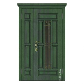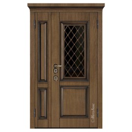 Классическая двустворчатая дверь СМ1820/25Е2 с богатой отделкой. Модель с изящной фактурой полотна дополнено большим стеклопакетом с вкладной декоративной решеткой.