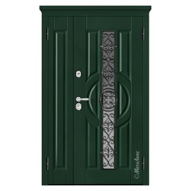 Роскошная модель Статус CМ893/30 Е станет великолепным вариантом в большой нестандартный проем. Дверь изготовлена в современном дизайне с окном, элегантной кованой решеткой и красивой фрезеровкой.