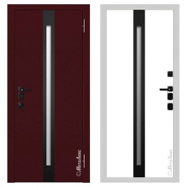 Стальная входная дверь Boston СМ6011 обладает модным стильным вертикальным стеклопакетом, обрамленным металлической рамкой и дополнена современной фурнитурой.
