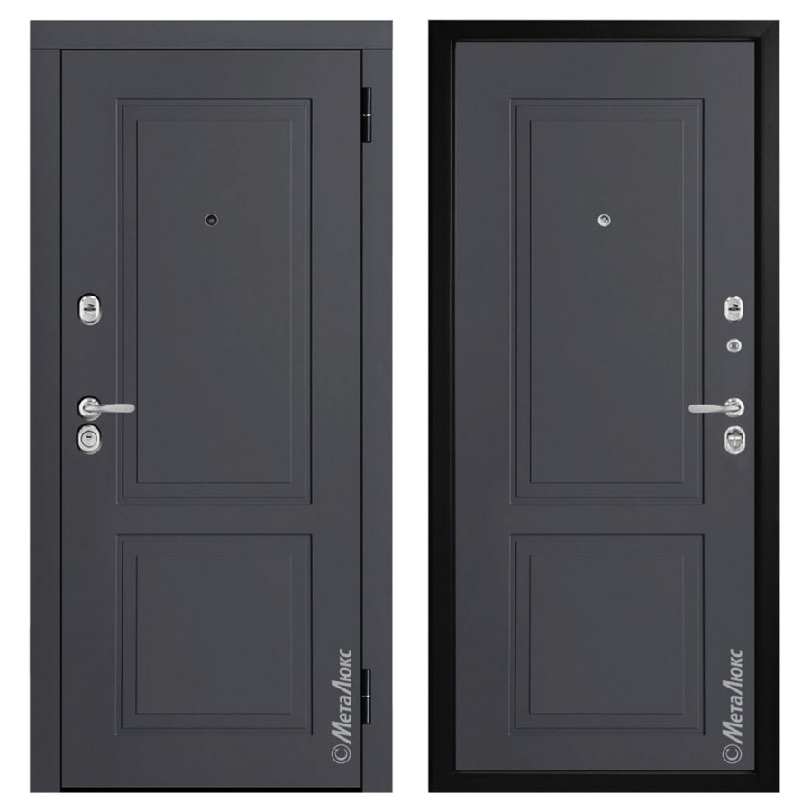 Внутренняя влагостойкая панель МДФ 12 мм высокой плотности с покрытием пленкой Vinorit, цвет «Графит». Снаружи влагостойкая панель МДФ 12 мм высокой плотности выполнена в цвет «Серый», эмаль. Покрытие на металле "Муар" черного цвета. Модель предназначена для установки в квартиру или дом, под защитный козырек или навес.